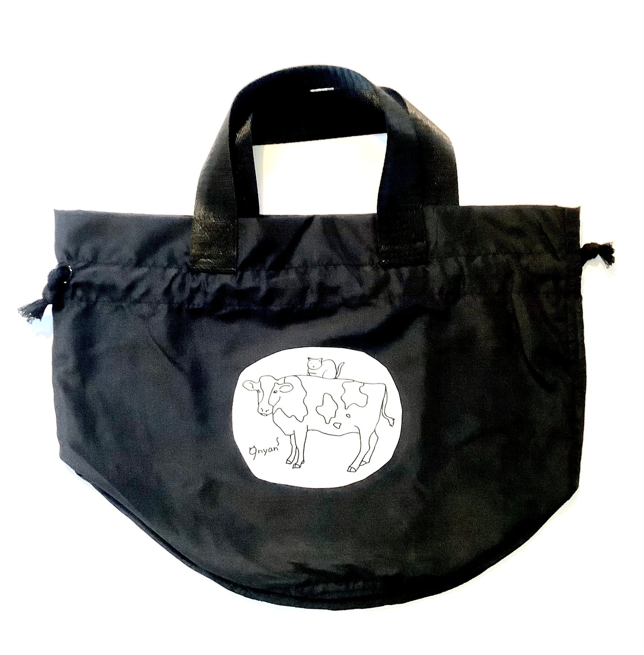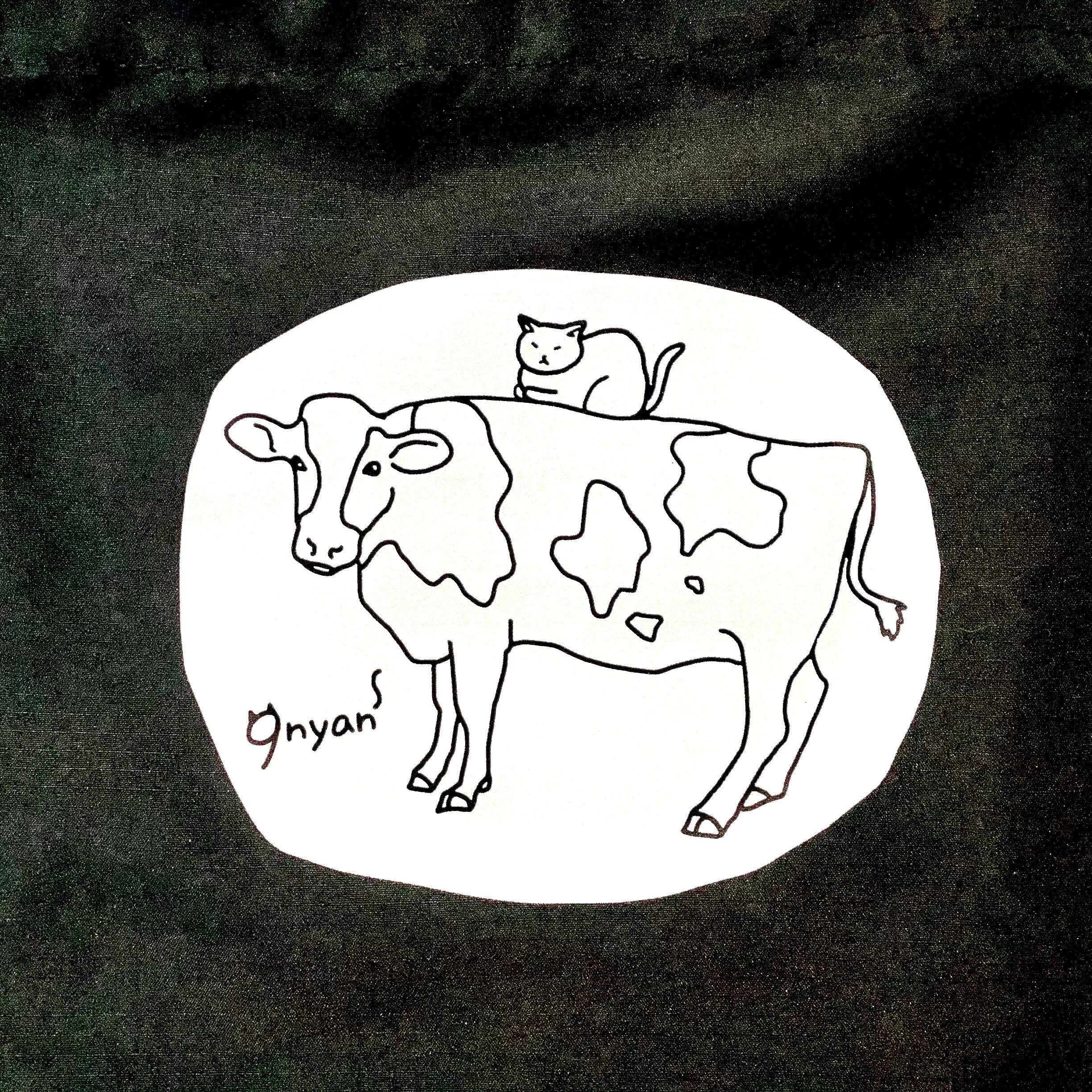 猫ちゃんがうしさんの背中に乗ってお散歩するイラスト入りの巾着バッグ✨