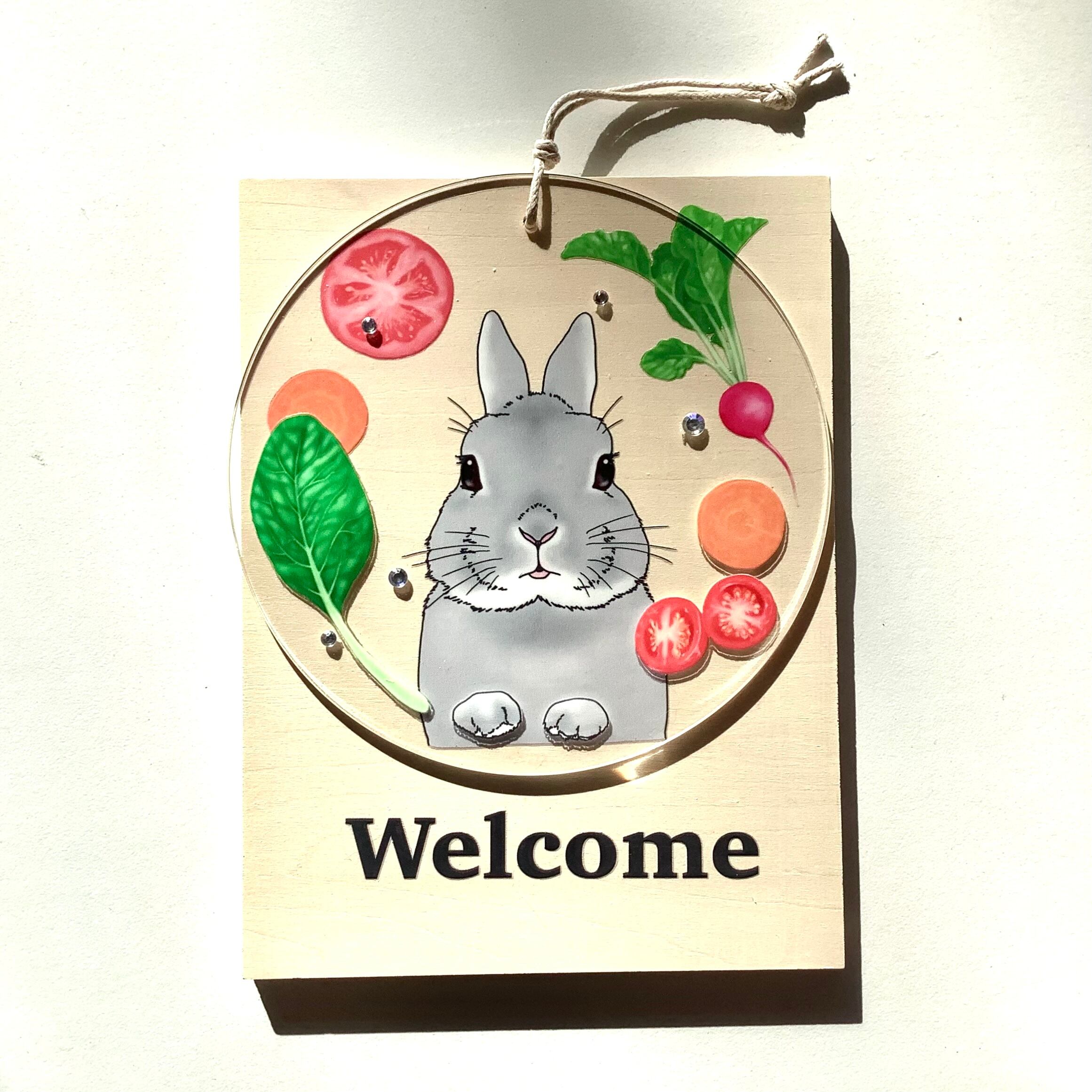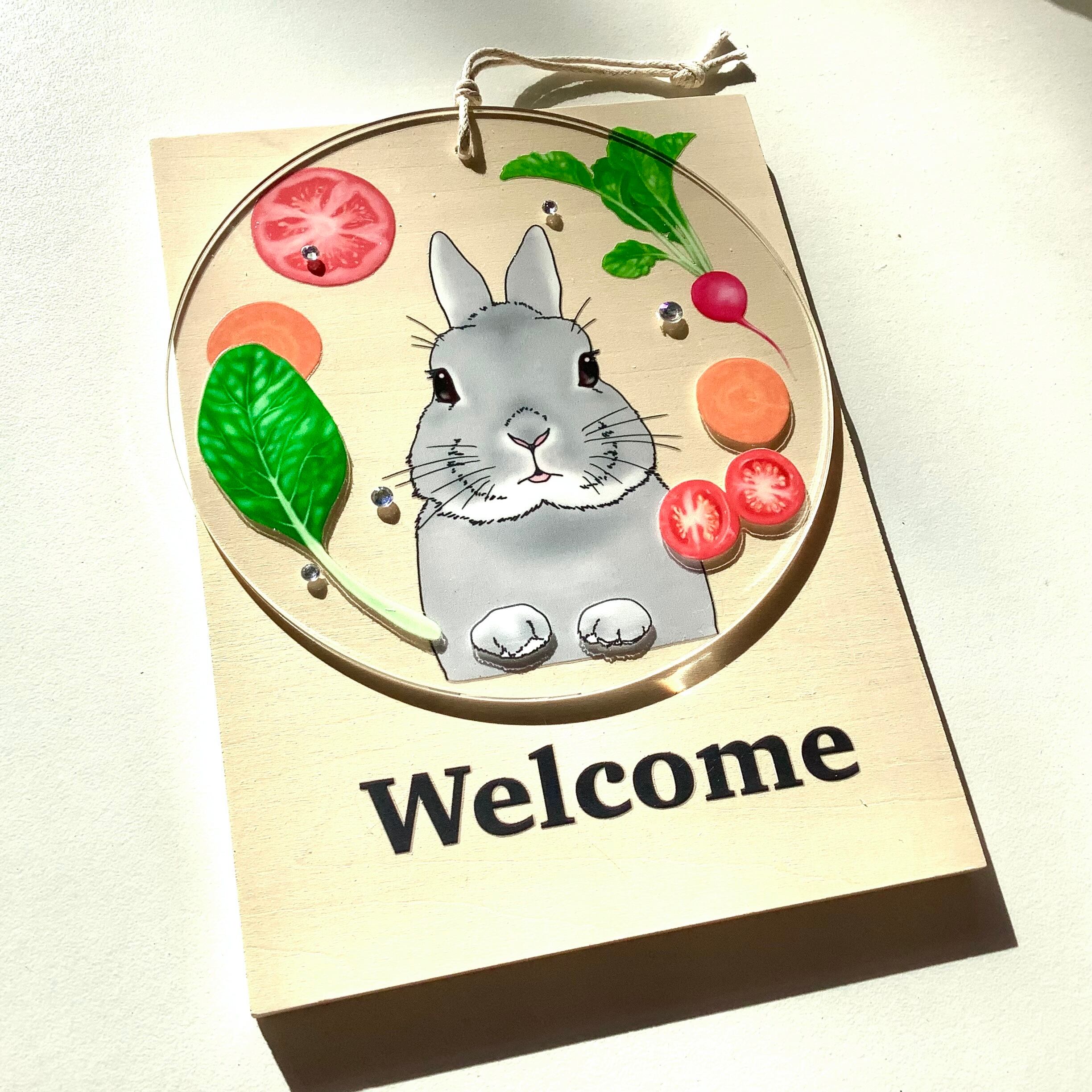 Welcomeプレート ウェルカムボード 玄関 インテリア / うさぎ(グレー)・イエロー